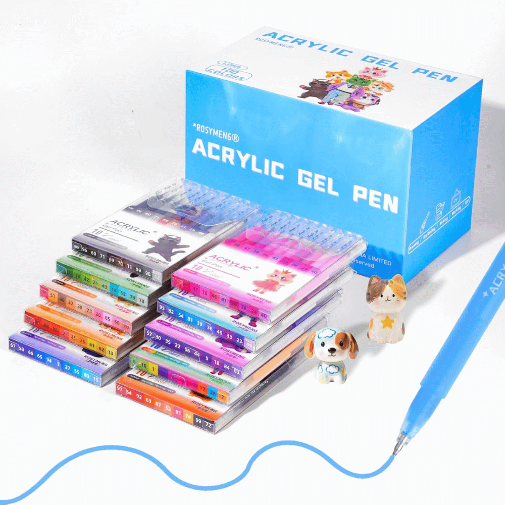 - Rosymeng 100 Acrylic Paint Pens: Comes with a sleek, organized gift box and color-coded labels for easy shade identification. This set emphasizes organization and convenience for hobbyists and professionals alike.