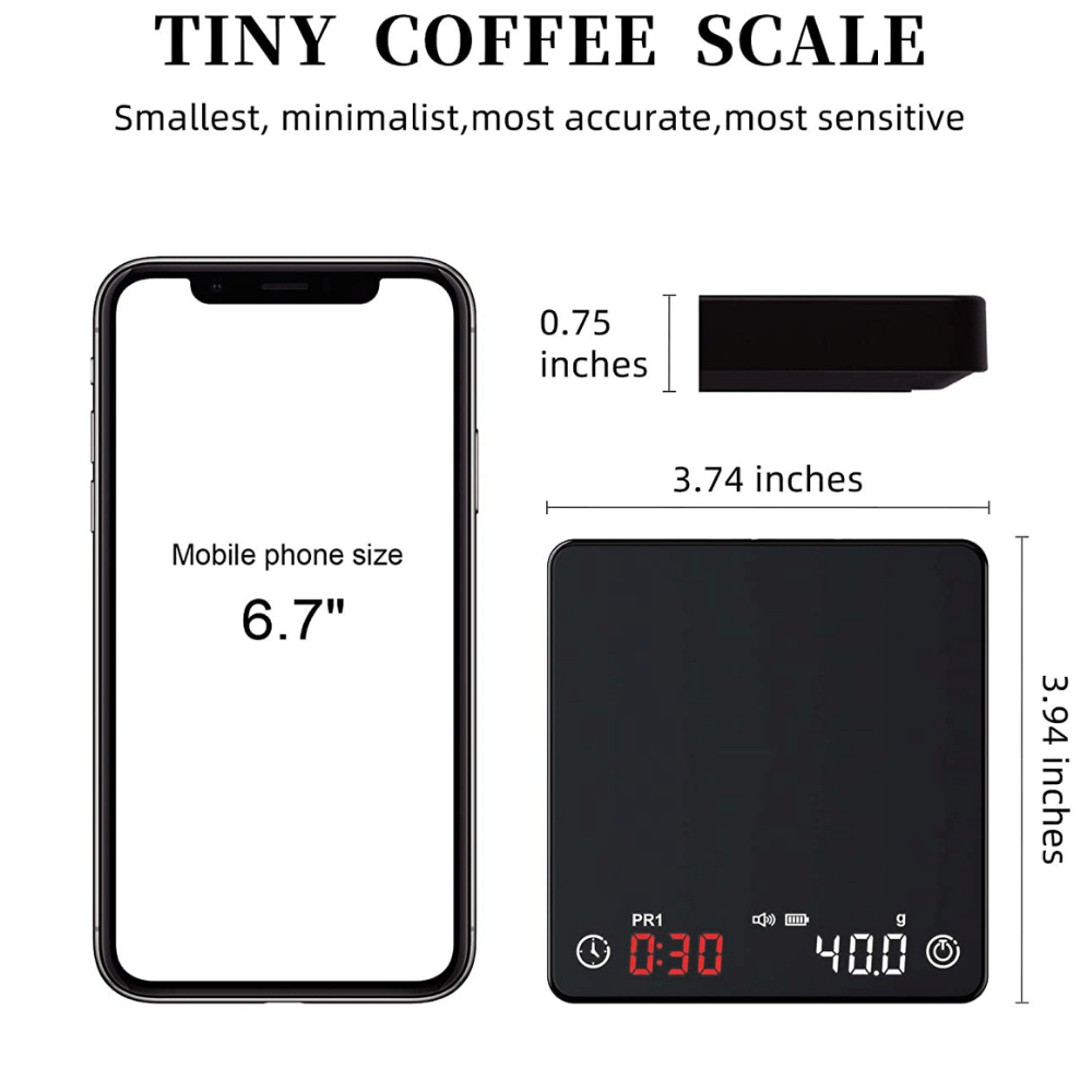 This sleek and durable scale is designed to help you get the perfect ratio every time. It has a large, easy-to-read display so you can see exactly how much coffee and water you're using. And it's precision sensors ensure that you get an accurate measurement every time.