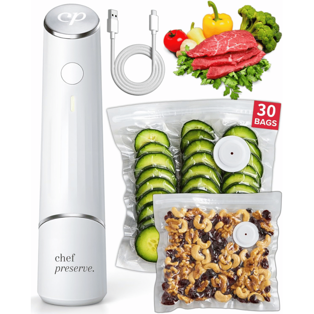 The Chef Preserve Compact Vacuum Sealer is like having a personal freshness wizard in your kitchen—saving you cash, time, and fridge space. Here’s why we absolutely love it: