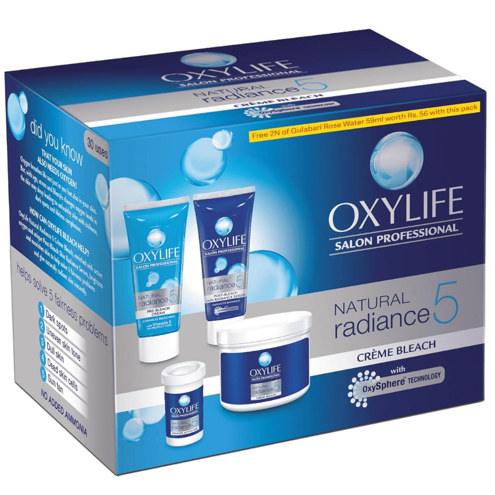 - OxyLife Natural Radiance 5 Creme Bleach: Crafted with natural, skin-safe ingredients, free from gluten, artificial colors, and harsh chemicals, ensuring suitability for sensitive skin types.