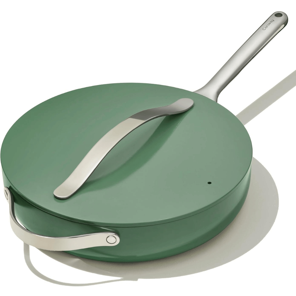 - Caraway Ceramic Sauté Pan: Oven-safe up to 550°F and designed for consistent heating, this sauté pan is perfect for everything from searing to simmering.