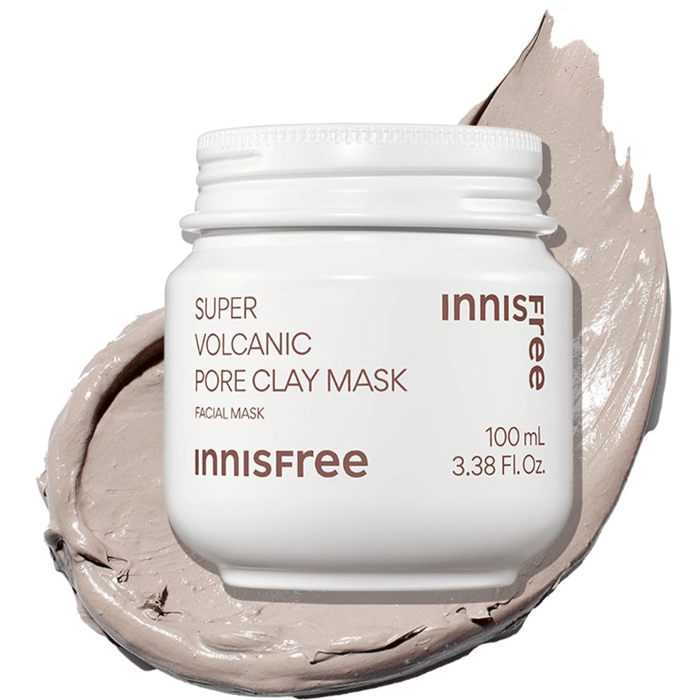 - Innisfree Super Volcanic Pore Clay Mask features volcanic clusters derived from Jeju Island, along with AHA for gentle exfoliation, making it a powerful yet skin-friendly product.