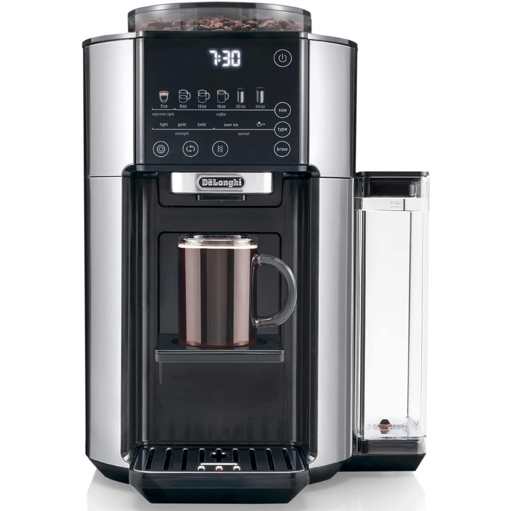 - De'Longhi TrueBrew shines with its elegant stainless-steel finish, ensuring it's not just a coffee maker but a statement piece in any kitchen. De'Longhi's reputation for durable, high-quality appliances also suggests a promise of longevity.