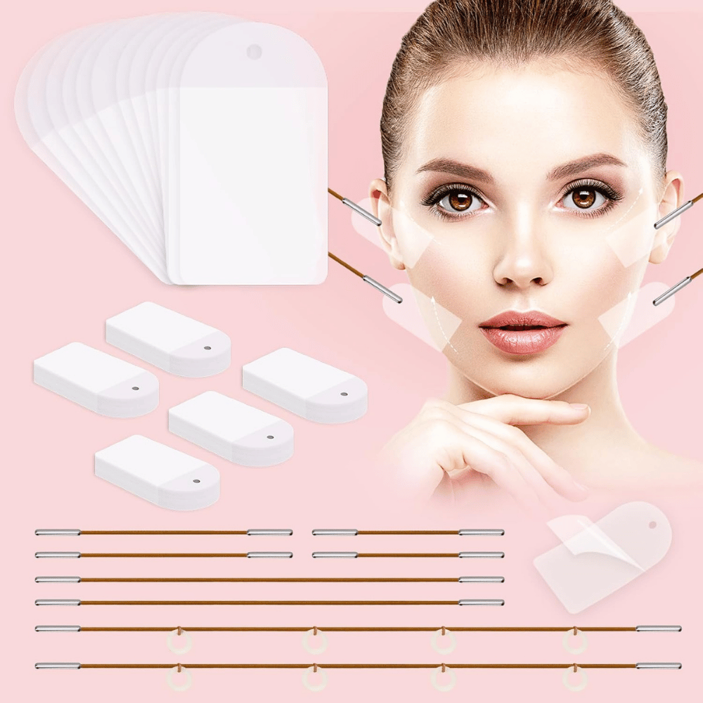 Face lifting tape, or face tape, is a thin, adhesive tape designed to be applied to specific areas of the face to create the appearance of tighter, more lifted skin. It works by gently pulling the skin and holding it in place, giving a temporary but noticeable lift.