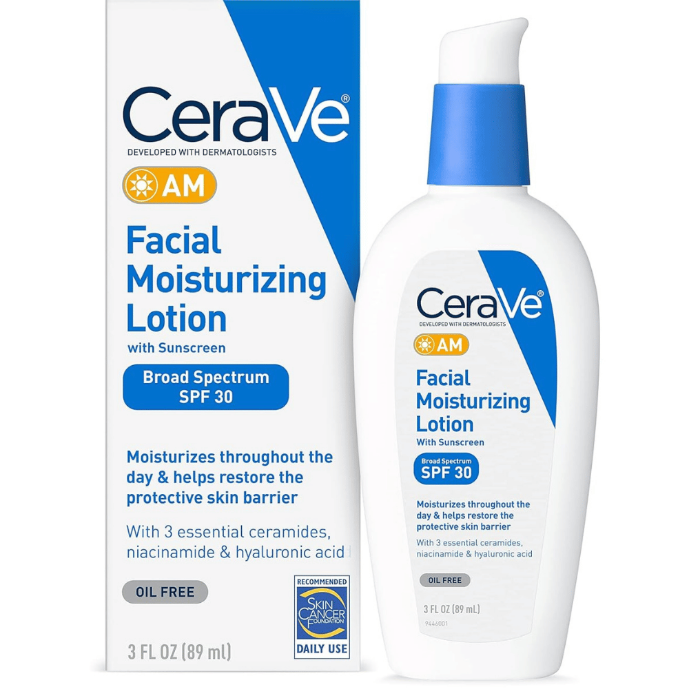 - CeraVe AM Facial Moisturizing Lotion with SPF 30: