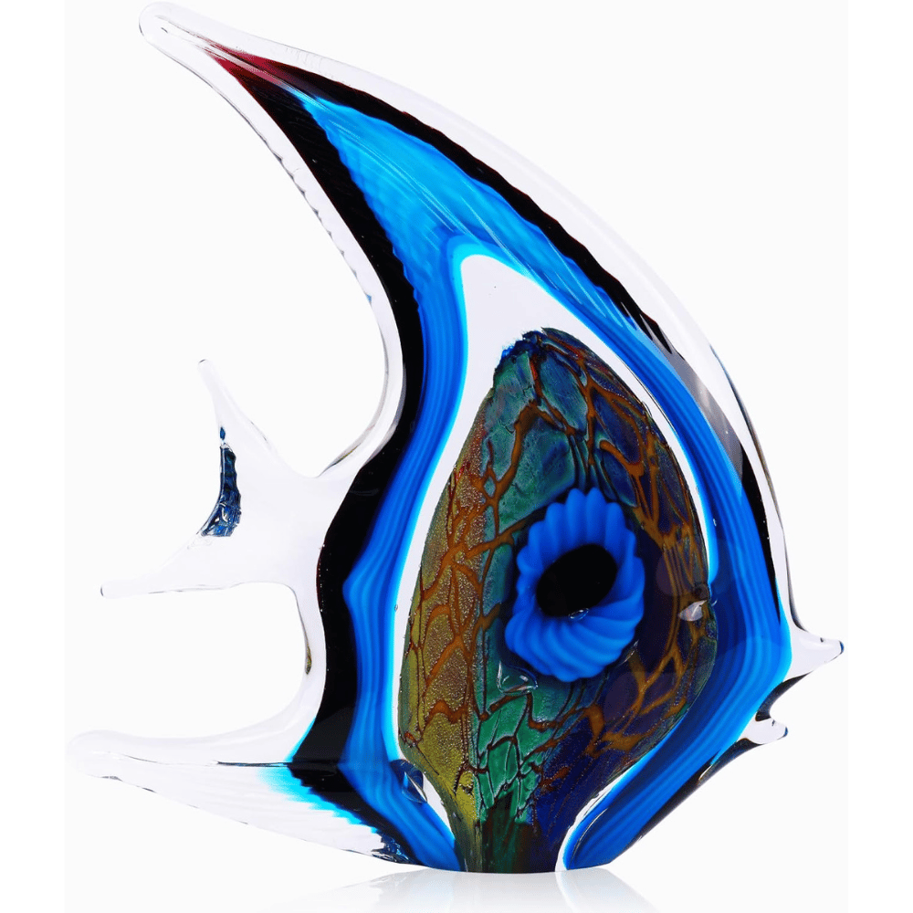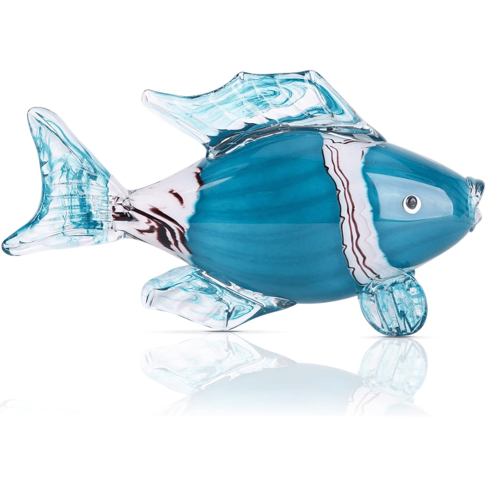 - DovDov Hand Blown Glass Fish: Known for its colorful and contemporary aesthetic, this sculpture features bold, blended hues of blue and other vibrant tones. Its modern design adds a stylish touch to bookshelves, TV stands, or office spaces.