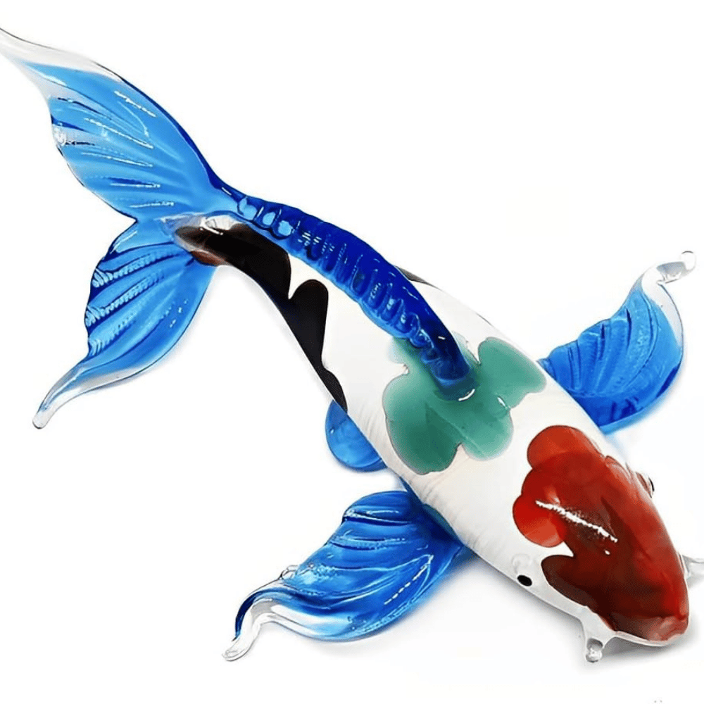- WitnyStore Blue White Red Glass Fish: This figurine combines shades of blue, white, and red in a koi carp-inspired design, exuding elegance and sophistication. Its oceanic calm and vibrant colors make it a standout decorative piece for any home setting.