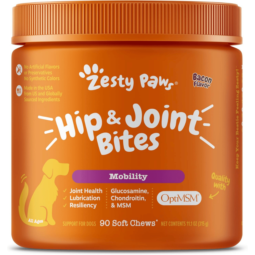 - Zesty Paws Hip & Joint Bites: With a vet-approved formula, these chews include a blend of glucosamine, chondroitin, and MSM. This combination is designed to support overall joint health, improve mobility, and ensure your dog remains active and vibrant.