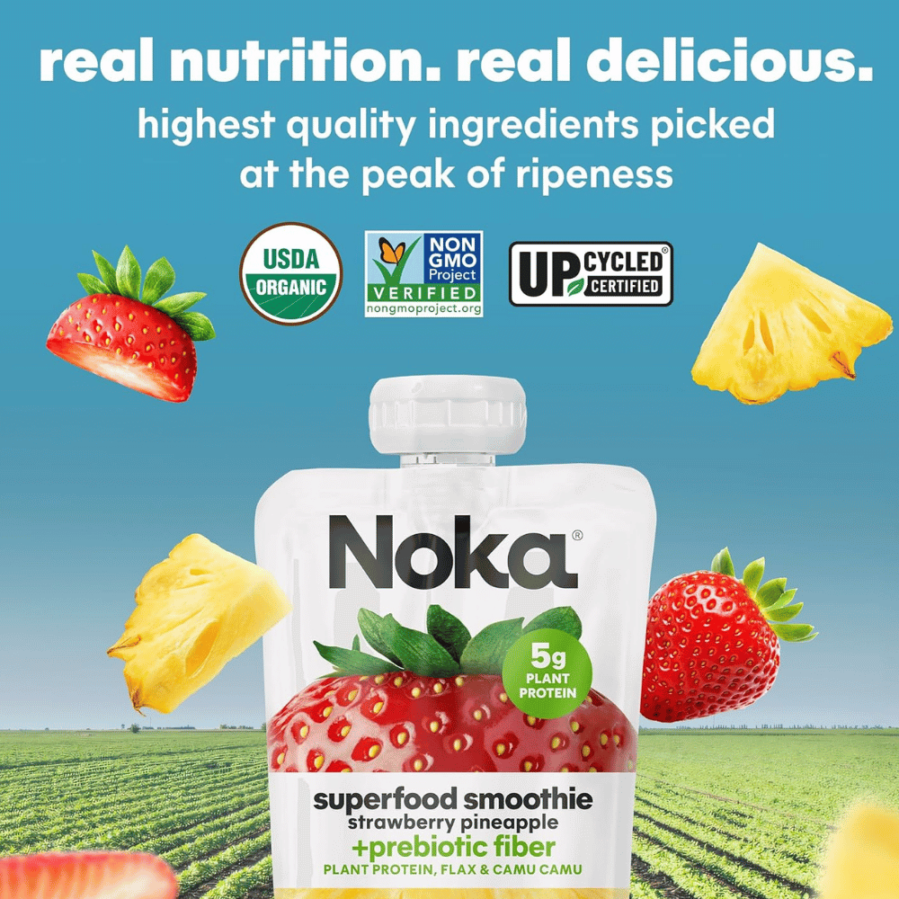 Packed with organic fruits, veggies, and plant-based protein, Noka Superfood Smoothie Pouches make healthy snacking effortless. These ready-to-go pouches are non-GMO, gluten-free, and full of nutrients to fuel your day. Perfect for busy schedules, they offer a quick, delicious, and nutritious option anytime, anywhere!