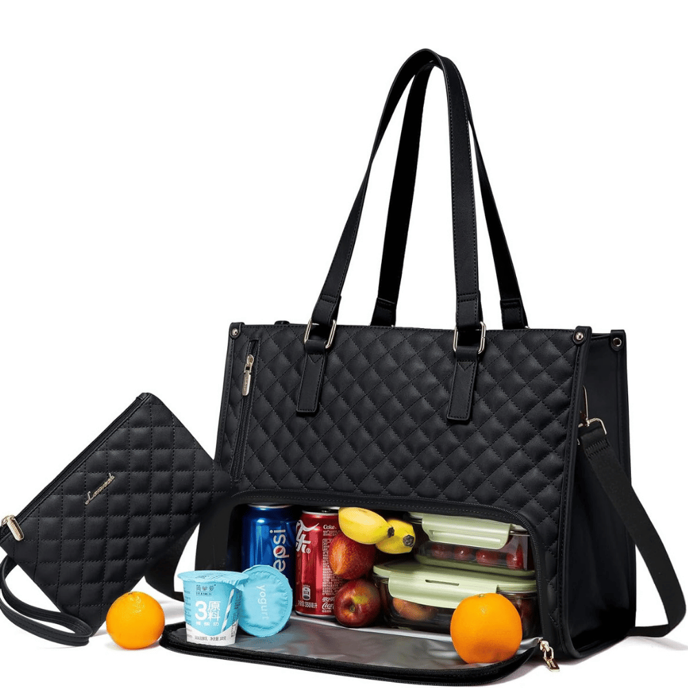 - Lovevook Lunch Tote Bag: Stylish and versatile with a quilted large-capacity design, this bag accommodates not only meals but also laptops (up to 15.6 inches) and an array of personal items. Its purse-like appearance makes it ideal for professional or casual settings.