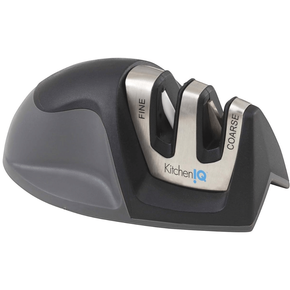 - The KitchenIQ Edge Grip 2-Stage Knife Sharpener is perfect for straight-edge blades, revitalizing them with precision and care. Note, it's not suitable for serrated edges, which keeps its specialties focused but impactful.