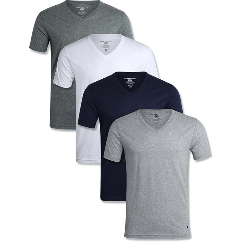- Lucky Brand comes in a pack of 4, providing excellent value with a mix of crewneck and V-neck options.