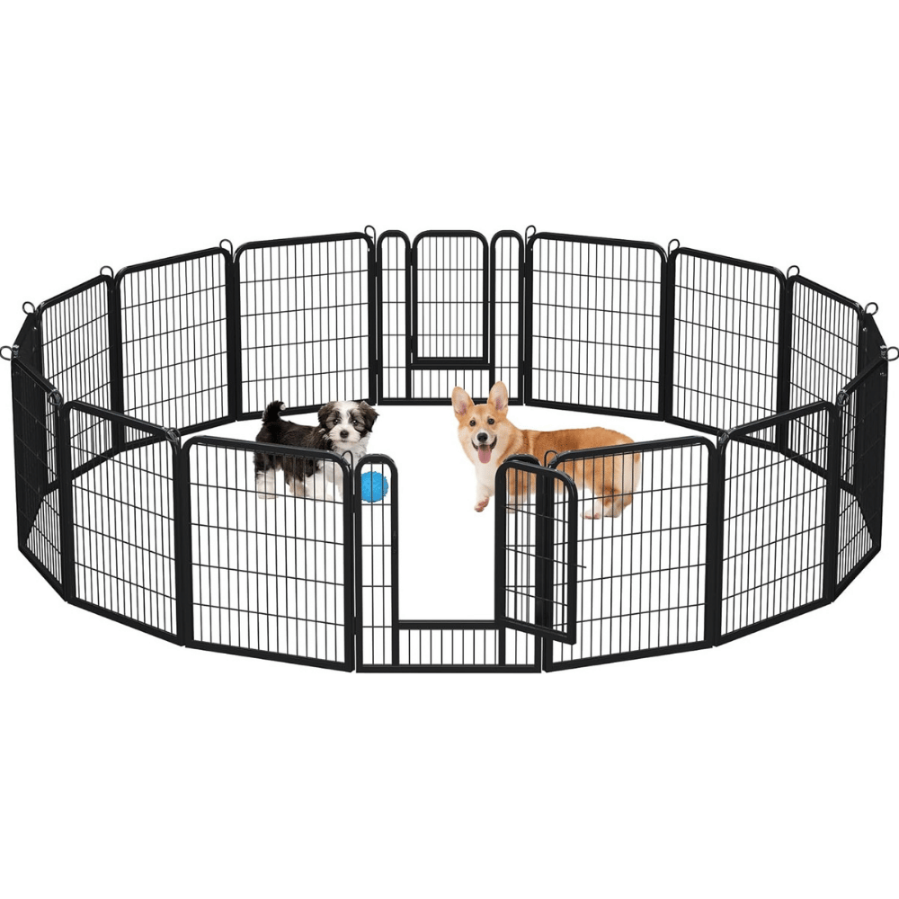- Yaheetech Dog Playpen: Made from robust metal panels with rust-resistant coating, this playpen is designed for long-lasting outdoor and indoor use. The sturdy build ensures that even the most energetic pets are safe and secure.