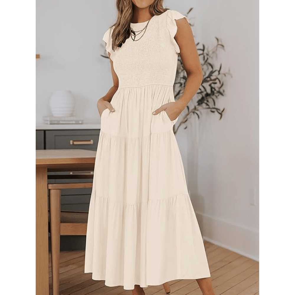 Imagine welcoming the warm breezes and blooming landscapes of spring in a dress that effortlessly blends comfort with sophistication. The ZESICA Spring Casual Dress does just that, featuring flutter short sleeves that add a playful yet elegant charm to your every move. The relaxed crew neck design invites a sense of laid-back grace, making it an ideal pick for both bustling city streets and serene park walks. With its smocked elastic waist, the dress cinches just right, offering a flattering silhouette that celebrates every curve.