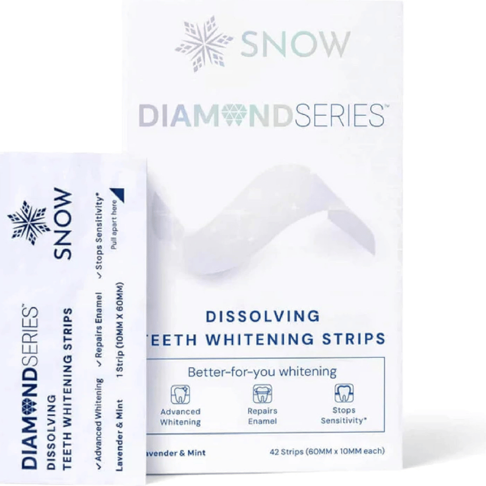 - Snow Diamond Dissolving Teeth Whitening Strips: Gentle and enamel safe, specifically designed to minimize sensitivity. Perfect for those with a history of discomfort using other whitening products.