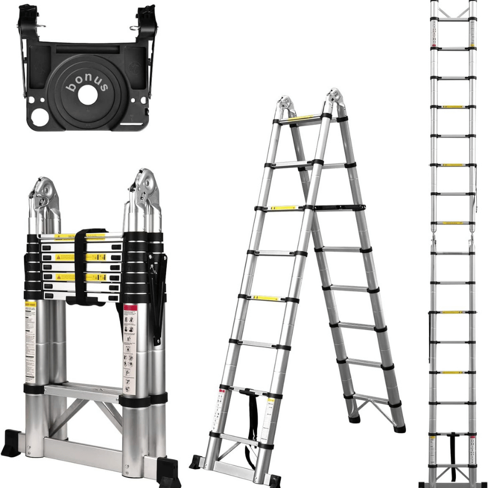 - Dezex Telescoping Ladder: Offers a maximum reach of 16.5 feet. Its A-frame design and balance bar make it a stable and versatile choice for both indoor and outdoor tasks.