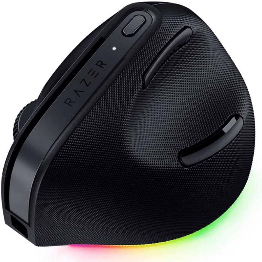 - Razer Pro Click V2 Vertical Wireless Mouse: Designed for all-day comfort, this mouse offers a 6-button layout tailored for versatility. The modern aesthetic, ergonomic form, and subtle Chroma RGB lighting elevate both style and comfort.