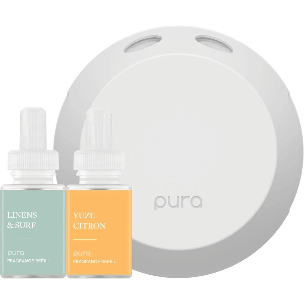 - Complete Starter Set: This isn't just the diffuser. Your set comes with the Pura 4 device and two delightful fragrance refills: the fresh, clean scent of Linens & Surf and the bright, zesty aroma of Yuzu Citron.