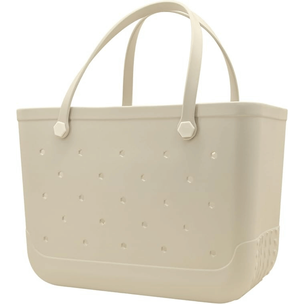 - Beach Totebag: Made from durable rubber material, this tote is sandproof and water-resistant, designed to withstand splashes, sun exposure, and occasional wave splashes. It features reinforced seams and a structured base for added durability and organization.