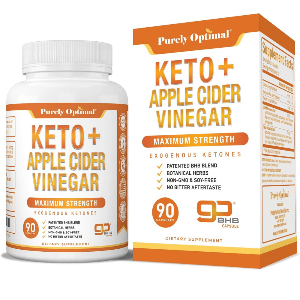 - Purely Optimal Keto+ Apple Cider Vinegar introduces an enchanting blend of BHB ketones and apple cider vinegar, perfect for keto enthusiasts looking for that extra edge in fat burning and appetite control.