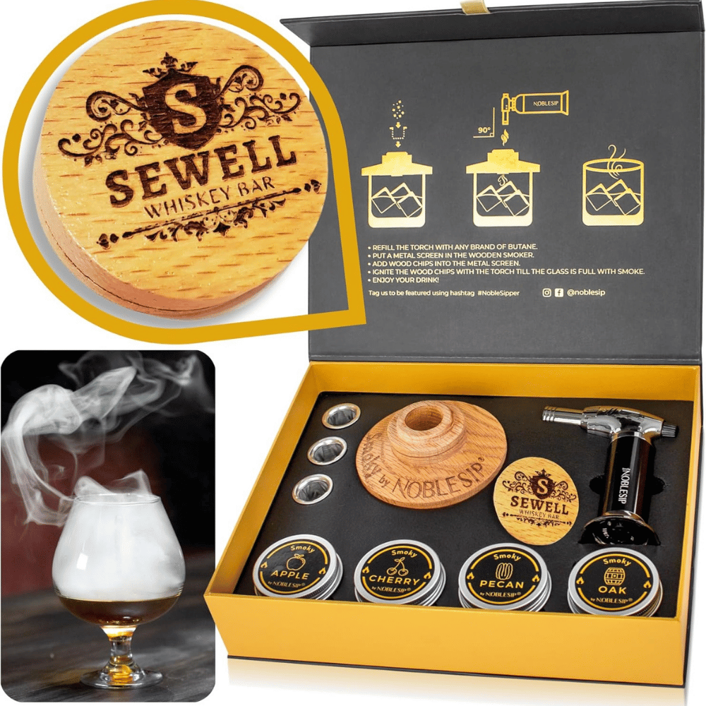 - NobleSip®: Provides a personalized touch with the ability to engrave a custom name on the whiskey smoker, making it a memorable gift. Comes with a designer gift box and ample wood chip options to tailor your cocktail experience.
